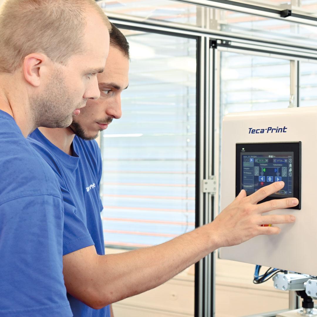 Mit der steigenden Komplexität an Tampondrucklösungen durch die Einbindung in Produktionslinien, die Hinzunahme von ergänzenden Funktionen wie z.B. Kamerasystemen zur Positions- oder Druckbildüberwachung usw., entstehen auch neue Anforderungen an die Steuerungen unserer Maschinen und Anlagen. Wir bei Teca-Print unterstützen diesen wichtigen Schritt, denn in unserer digitalen Welt ist es für Prozesssicherheit und Prozessstabilität unerlässlich, effiziente Softwarelösungen anzubieten.
