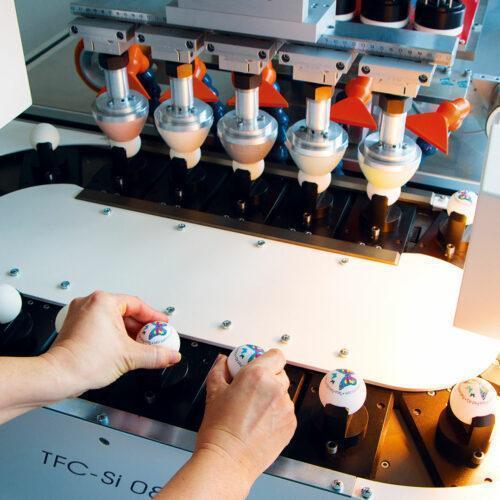 Wir passen uns an. Ihr Teil ist z.B. zu gross, um es für einen Mehrfarbendruck von einer Farbe zur nächsten zu bewegen? Dann bewegen wir die Drucktampons und das Teil bleibt an Ort und Stelle. Und auch hier sind elektromechanische Lösungen möglich.