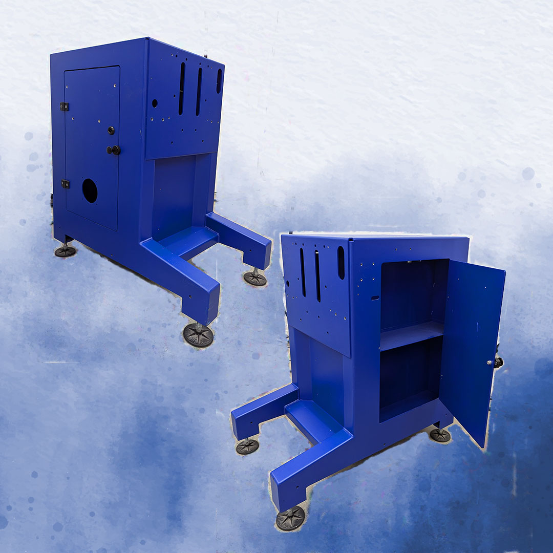Nous proposons un socle de machine MS 252 de couleur bleue. Le socle représente une base stable pour les machines de tampographie de petite et moyenne taille. La porte latérale permet d’utiliser l’intérieur comme un espace de rangement.