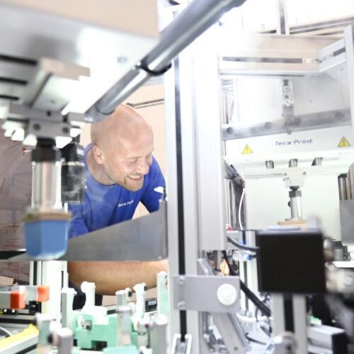 Montage einer Anlage mit vier Tampondruckmaschinen TPE 251 – unsere Mitarbeiter sind engagiert und arbeiten sehr präzise