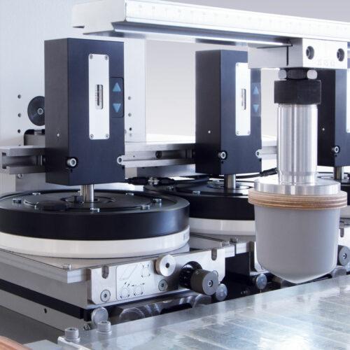 elektromechanisch (3-Achsen-Steuerung mit 3 Servomotoren), stufenlos einstellbare Arbeitselemente